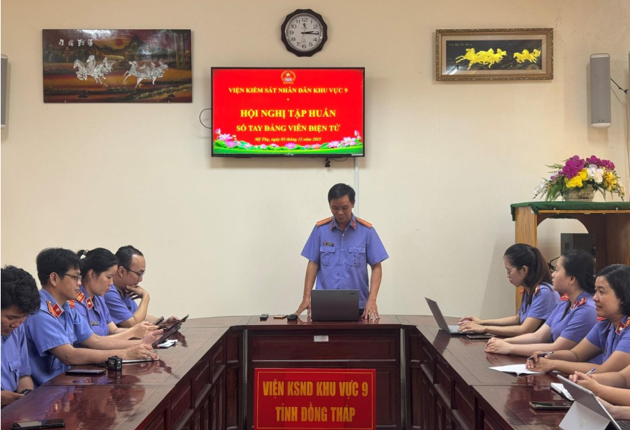 Nhằm cụ thể hóa đề án chuyển đổi số trong các cơ quan Đảng và Nghị quyết 57-NQ/TW về đột phá phát triển khoa học, công nghệ, đổi mới sáng tạo và chuyển đổi số quốc gia, cũng như nhằm triển khai sử dụng Sổ tay đảng viên điện tử (STĐVĐT) đến toàn thể đảng viên trong chi bộ; Thực hiện Kế hoạch số 14/KHVKS ngày 28/11/2025 của Viện kiểm sát nhân dân Khu vực 9, vào lúc 14h00 ngày 02/12/2025, Viện kiểm sát nhân dân Khu vực 9 tổ chức Hội nghị tập huấn Sổ tay đảng viên điện tử. Hội nghị có sự tham gia của toàn thể đảng viên, công chức của đơn vị.
