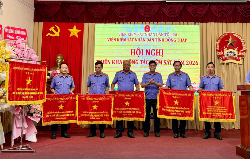 Năm 2025, Văn phòng VKSND tỉnh Đồng Tháp vinh dự được công nhận là đơn vị dẫn đầu khối và được tặng Cờ thi đua Ngành; đồng thời đạt danh hiệu “Tập thể hoàn thành xuất sắc nhiệm vụ” trong hai năm liên tiếp 2024 – 2025, nhiều cá nhân được biểu dương, khen thưởng trong các phong trào thi đua của Ngành và địa phương. Kết quả đó thể hiện rõ tinh thần đoàn kết, trách nhiệm và sự nỗ lực không ngừng của tập thể lãnh đạo, công chức Văn phòng trong việc nâng cao chất lượng tham mưu, phục vụ hiệu quả công tác quản lý, điều hành của Ngành.